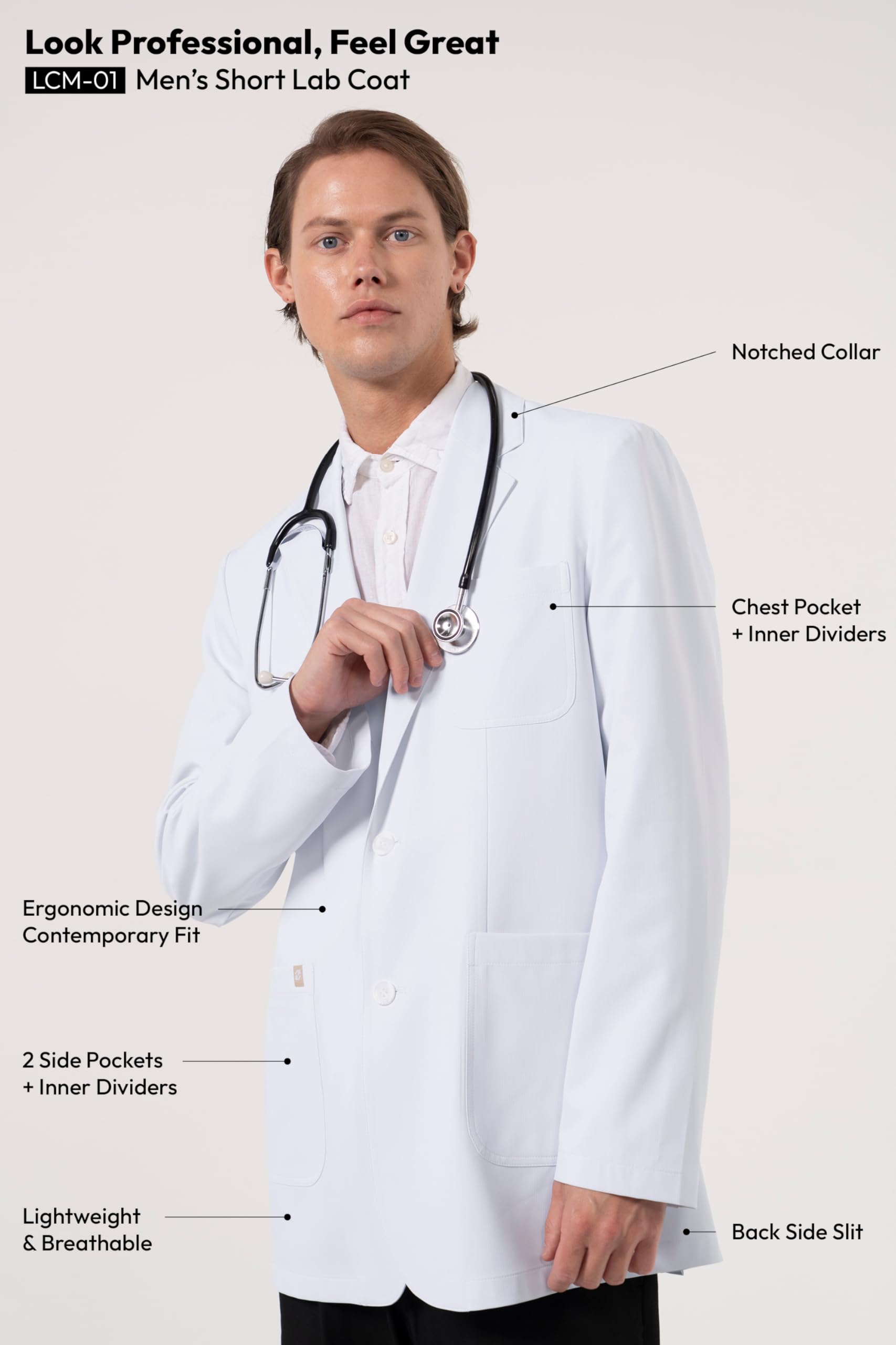 - Professional-looking white lab coat features wrinkle-resistant durable construction for a clean appearance and long-lasting daily wear.